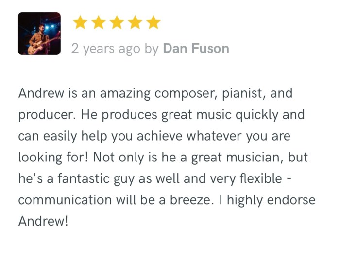 “He produces great music quickly and can easily help you achieve whatever you are looking for!”
